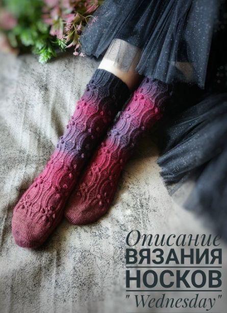 Данным узором носки можно связать на два размера: 37-39р – набор 72 петли (размер 1)