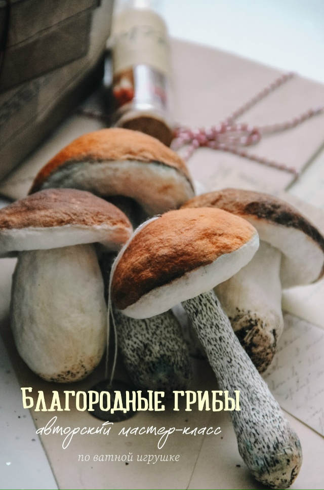 два варианта игрушки, белый гриб и подосиновик.