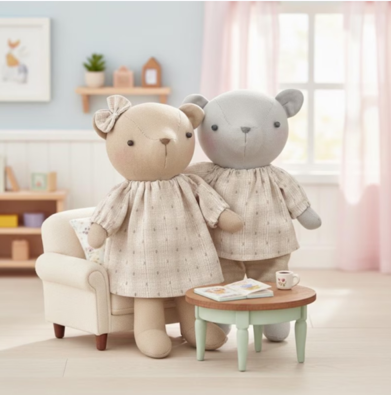 - В комплект входит выкройка одежды для медвежонка – оденьте своего плюшевого мишку в разные наряды.