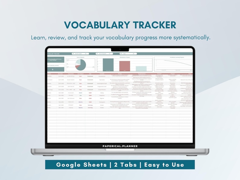 [Google Sheets] Трекер изучения слов Language Learning: Google Sheets Vocabulary Tracker (PapericalPlanner)
