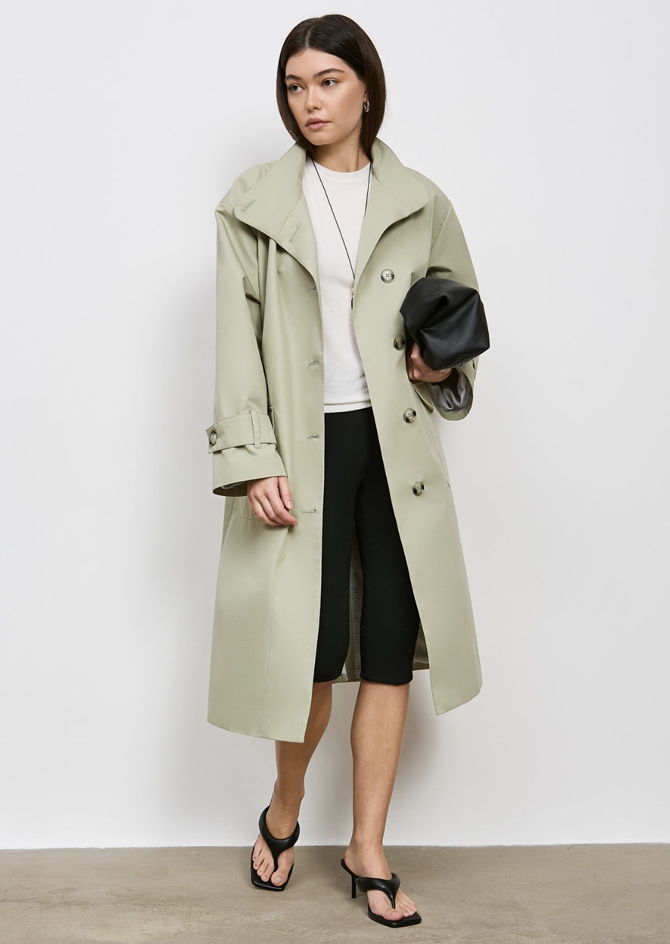 Тренч сшит из плотного хлопка с водоотталкивающей пропиткой, состав 60% хлопок, 40% полиэстер, плотность 270 гр/м².