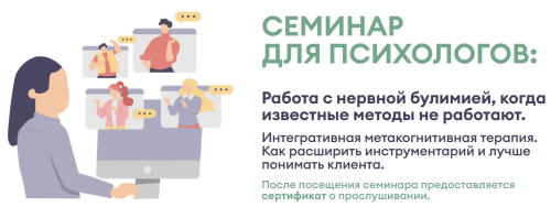 Семинар посвящен работе с нервной булимией в тех случаях, когда привычных методов оказывается недостаточно. Материал построен вокруг интегративной метакогнитивной терапии и помогает расширить инструментарий специалиста, глубже понимать внутреннюю логику клиента и точнее выстраивать терапевтическую работу.