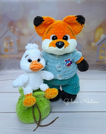 Высота лисенка 28 см, утёнок 12 см