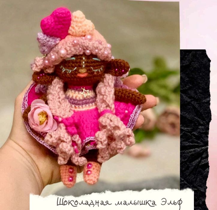 Мастер-класс представляет собой подробное руководство по созданию вязаной игрушки в виде милой эльфийки шоколадного цвета. Игрушка создана специально ко Дню Святого Валентина.