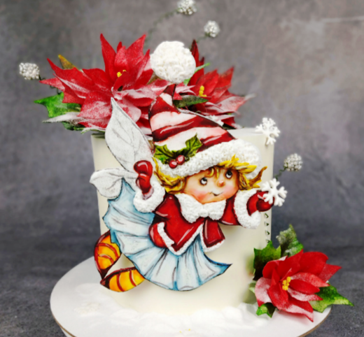 «Новогодняя фея». Пошаговые уроки по изготовлению декора и оформлению тематического торта.