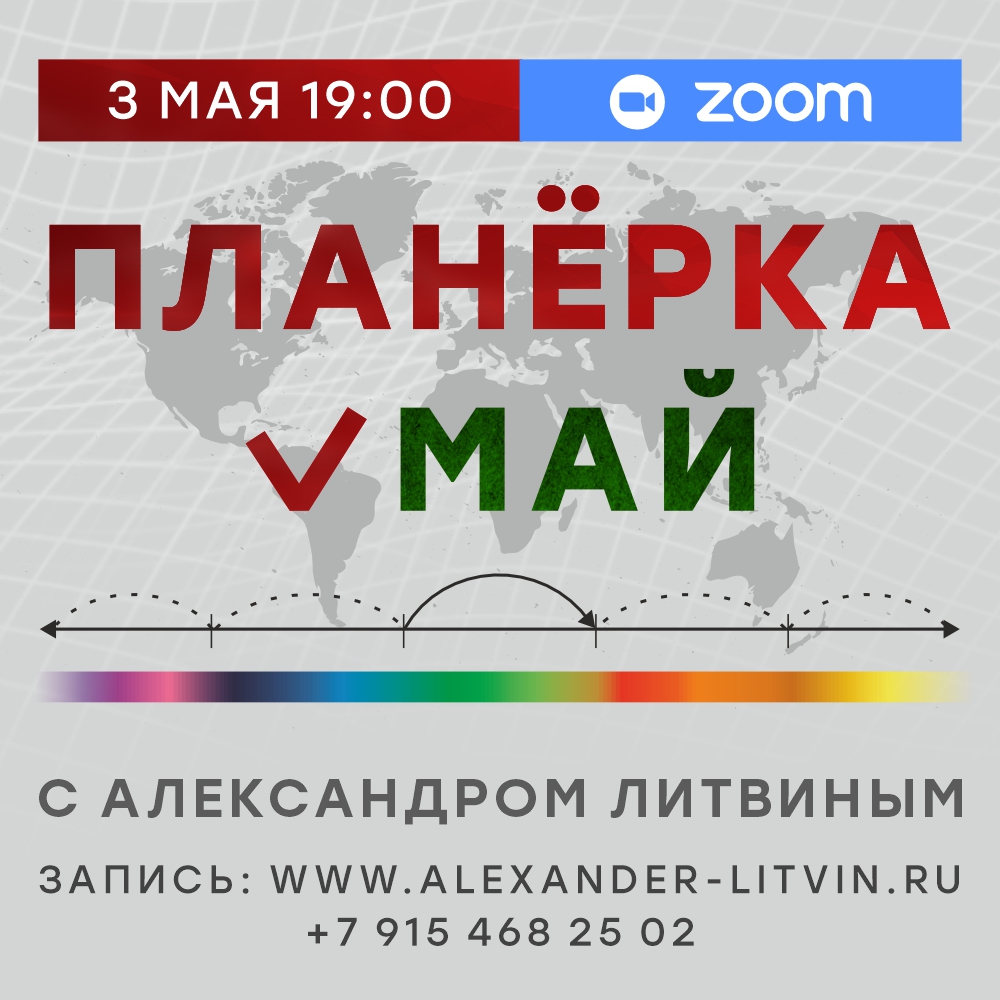 В воскресенье, 3 мая 2026 года, в 19.00 по Москве в Zoom состоится наша традиционная ежемесячная встреча - онлайн сессия вопросов и ответов "Май 2026. Планерка с Аоександром Литвиным". Александр Богданович даст анализ предстоящему периоду и ответит на вопросы зрителей.