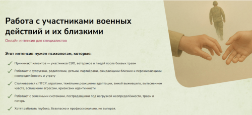 - Получите комплексную схему работы с клиентами, прошедшими через войну и связанные с ней травмы;