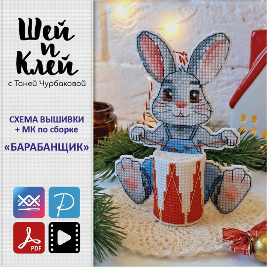 Прилагаются два электронных формата схемы (dize и saga) для приложений Cross Stitch Saga и CS Paradise. А также дополнительное наглядное видео о том, как пришивать барабан.