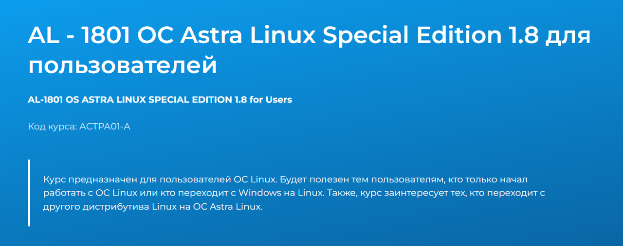 [Специалист] AL - 1801 ОС Astra Linux Special Edition 1.8 для пользователей (Дмитрий Чернов)