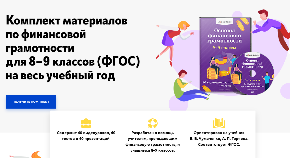 - Разработан в помощь учителям, преподающим финансовую грамотность, и учащимся 8–9 классов.