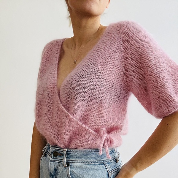 [Вяжи.ру] Camille Blouse — вязаная мохеровая блуза спицами с запахом [kolibri by johanna]
