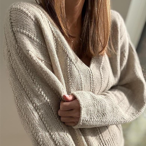 [Вяжи.ру] Элегантный свитер с красивой V-горловиной Flow Loop V-Neck, вязаный спицами сверху [Other Loops]