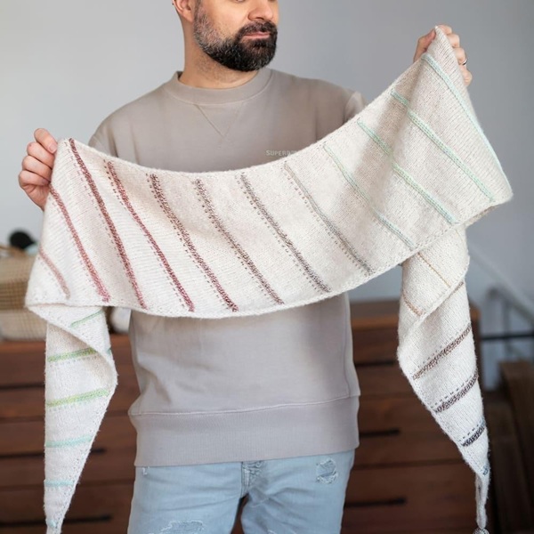 Особенность шали — изящные диагональные полосы, которые можно выполнить в пастельных оттенках для нежного образа, или наоборот более ярких - для более яркого образа. Эти акценты не перегружают дизайн, а, наоборот, добавляют ему глубины и характера. Каждая полоса — как штрих художника, создающий гармоничный узор.