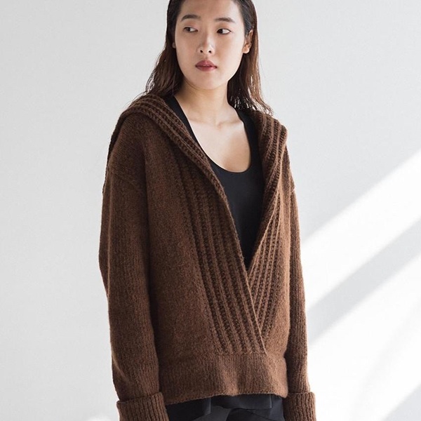 Пряжа: Woolfolk Luft (55% мериносовая шерсть, 45% органический пима-хлопок; 100 м / 50 г, толщина пряжи Bulky), 11 (12, 14, 16, 17, 19, 21, 22) мотков.