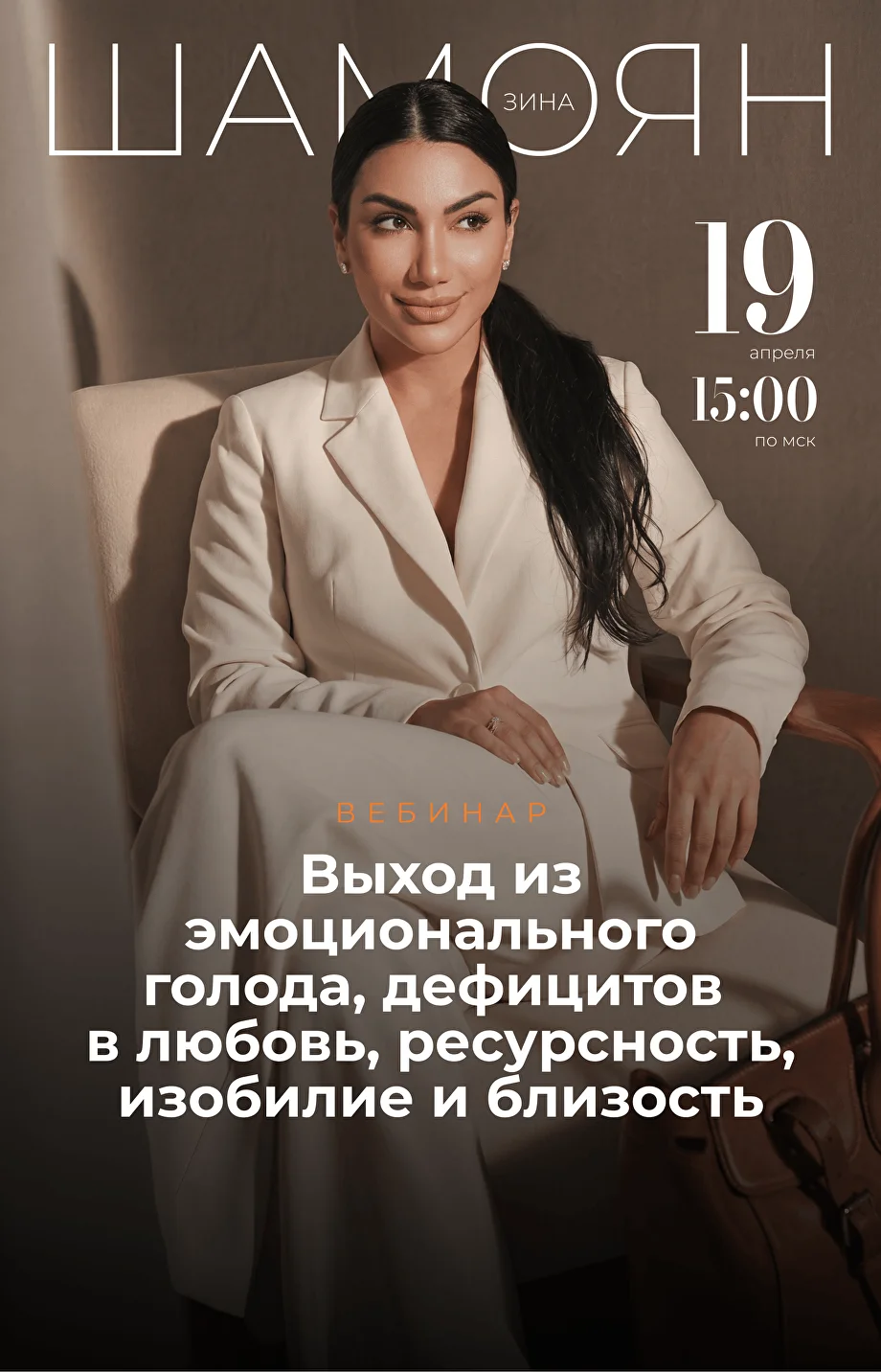 Вебинар Зины Шамоян о внутренней пустоте, эмоциональном голоде, дефиците близости и восстановлении контакта с собой.