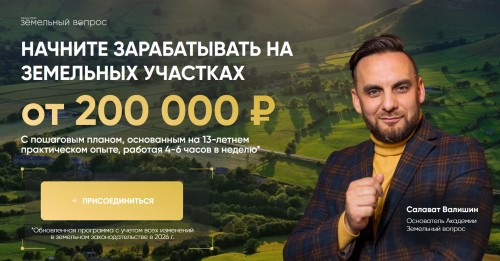 Начните зарабатывать на земельных участках с пошаговым планом, основанным на 13-летнем практическом опыте, работая 4-6 часов в неделю от 200 000 рублей.
