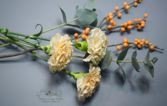 В курс входят следующие уроки: Гвоздика в нежнейшем персиковом оттенке; Яркие и сочные ягоды илекса; Эвкалипт
